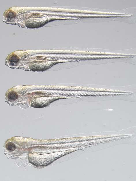 Zebrafish embryos used in the study reach about 4 millimeters in length by the age of 5 days.